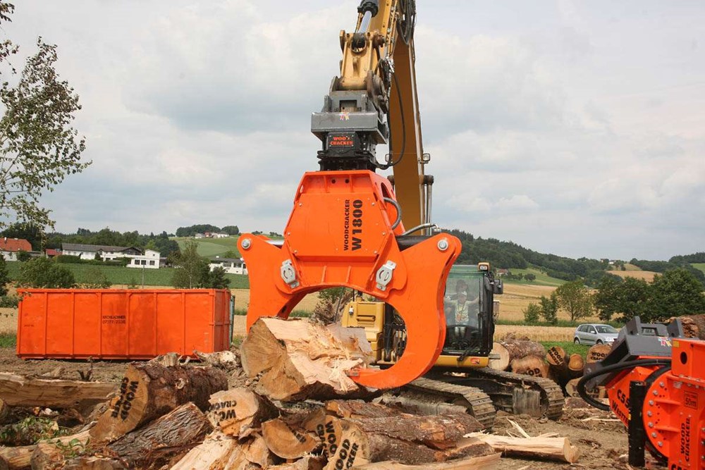 Pre-spaccatura del legno per l’ulteriore trasformazione in legna da ardere o cippato.